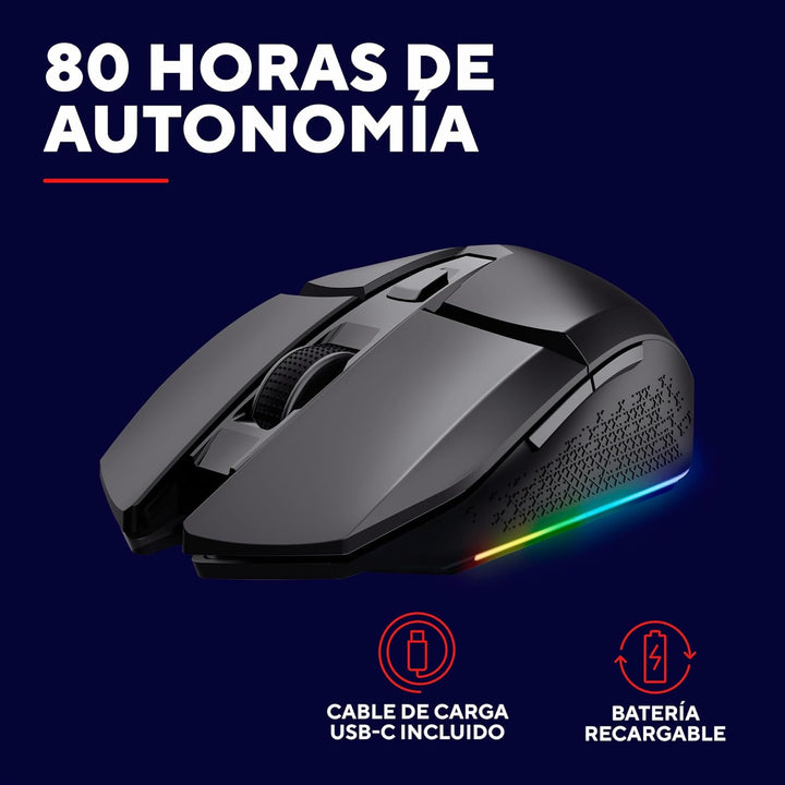 El Trust GXT Felox está diseñado para gamers que buscan libertad inalámbrica sin sacrificar rendimiento. Su batería recargable ofrece hasta 80 horas de autonomía, mientras que su sensor ajustable de 800 a 4800 DPI garantiza precisión en cualquier partida. Además, cuenta con iluminación multicolor personalizable y un diseño ergonómico para largas sesiones de juego.
