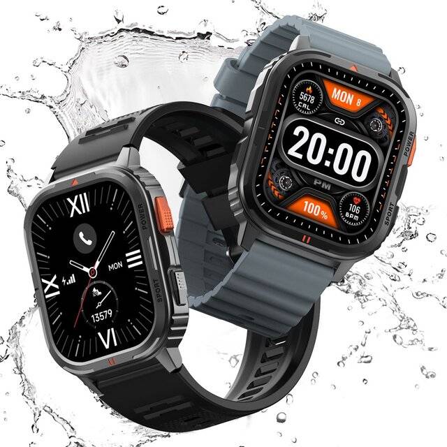 Un reloj inteligente de diseño robusto y moderno, compatible con iOS y Android, que combina estilo y funcionalidad: pantalla HD de 2,0″ (320 × 385 px) , conectividad Bluetooth 5.2 y certificación de resistencia al agua y polvo IP68 .